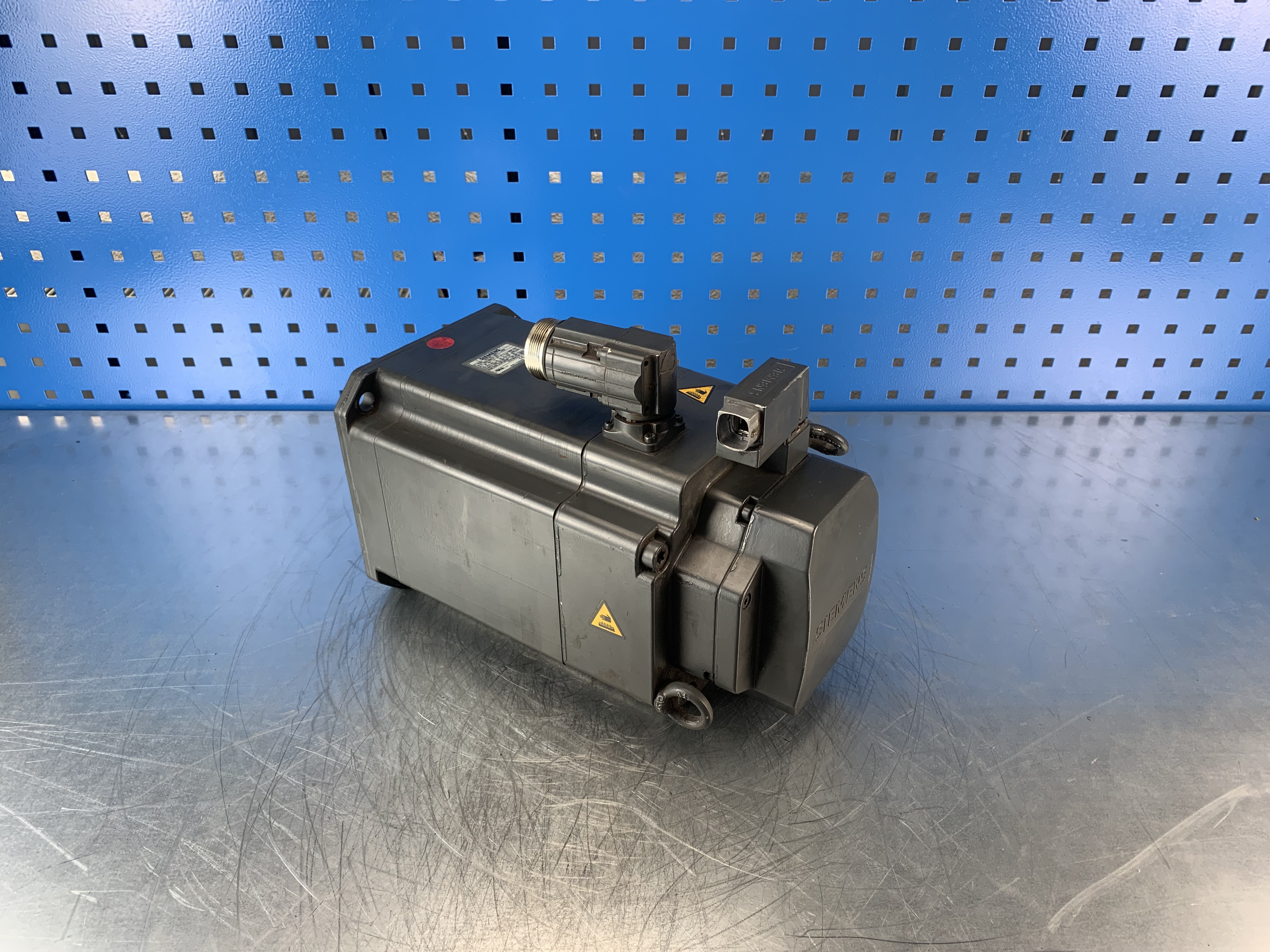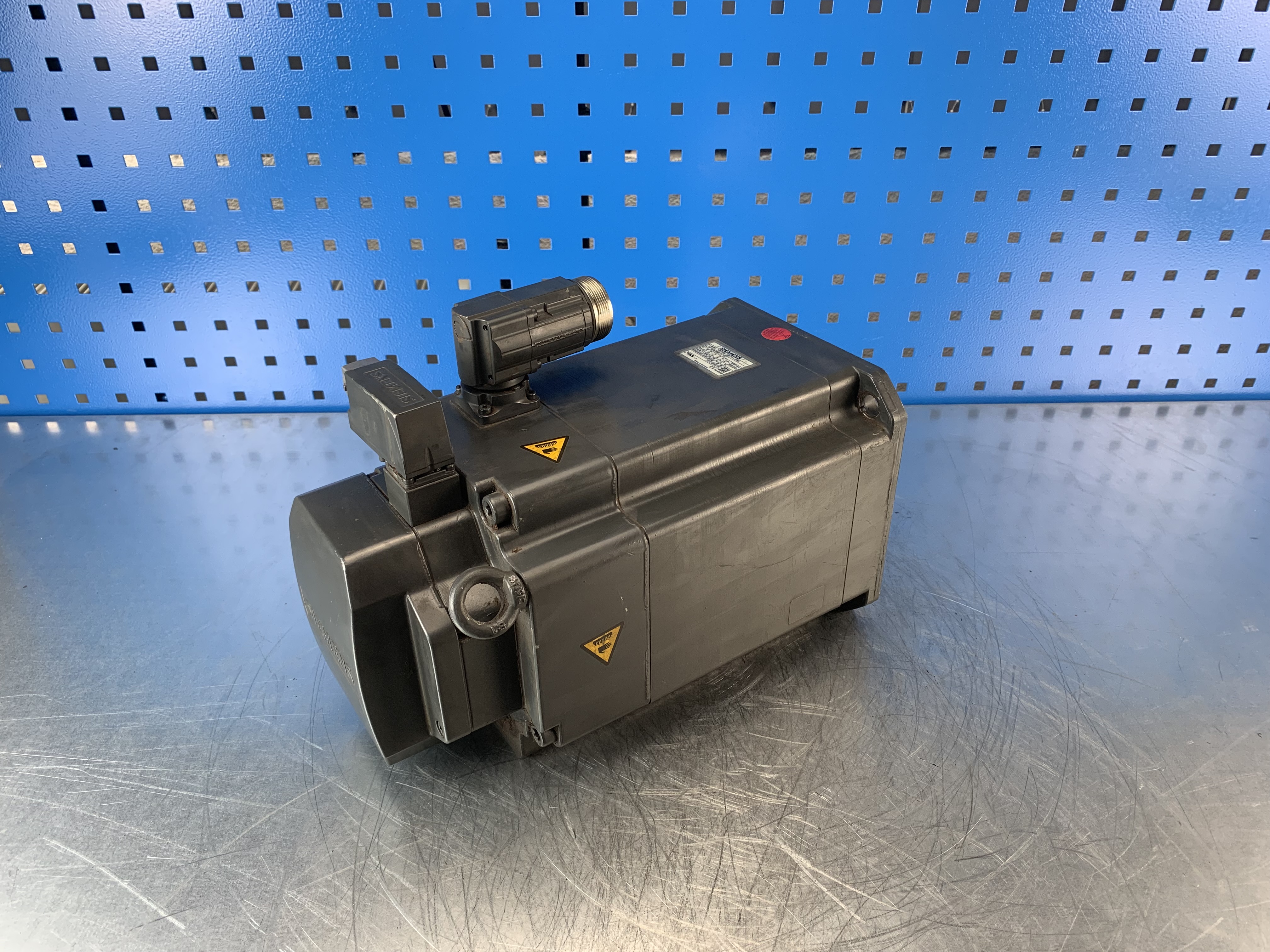 Synchronous motor, Shaft height 100, Compact (Generation 1), Natural cooling, 3000 rpm, 600 V, IMB5 mit DQ-Schnittstelle, Connector rotatable, Absolut encoder 22 bit Singleturn + 12 bit Multiturn, with DRIVE-CLiQ, Keyless shaft, radial eccentricity tolerance N, with holding brake, IP64, coated (Standard: anthracite grey RAL 7016)